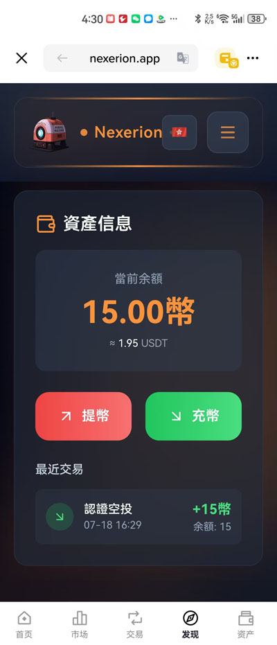 - 日常签到或挖矿直接产链上Token(NEXERION或USDT等)