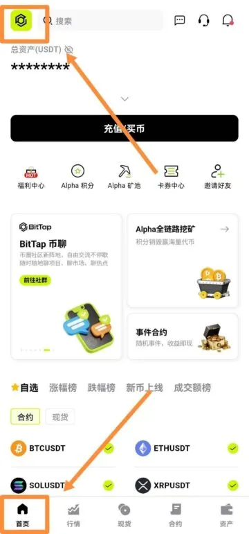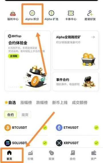 【首页】点击【Alpha全链路挖矿】